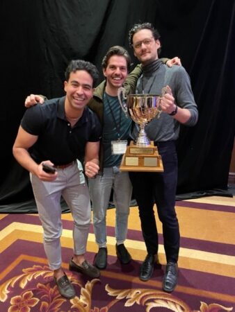 - L’équipe nous représentant au Génie en Anesthésie a ramené la coupe à la maison! Bravo aux Drs Charles Boudreau, Vincent Duchesne et Tahir El Meskine pour leur brio! L’animation de ce jeu questionnaire était encore confiée au Dr Lebon qui a bien déridé la foule.